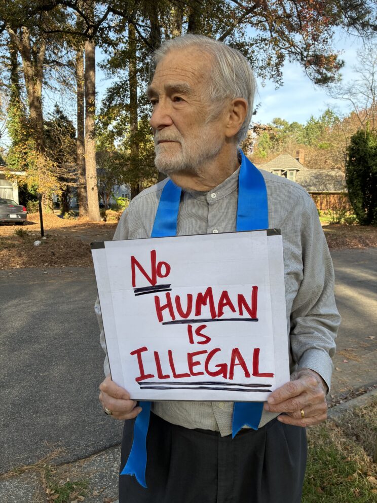 The Black and Tans have invaded North Carolina. Today I stood on a busy-traffic corner in my clerics with a sign. It lifted my spirits to see how many Raleighians honked/gave thumbs-up in approval. If you agree, you might make your own sign and take a stand. Invite neighbors too.